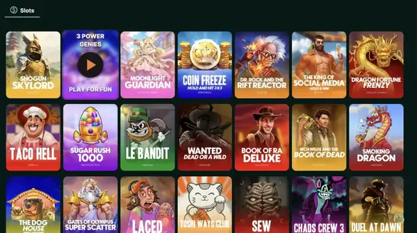 Per le slot Tg, trovi rulli classici, Megaways e formati moderni con funzioni bonus, inclusi i titoli Bonus Buy dove il provider lo consente. Nomi popolari che potresti riconoscere includono Book of Ra e Starburst. Se stai navigando nello specifico le slot del casinò Tg, puoi filtrare per provider, volatilità e tag delle funzionalità per restringere le scelte.